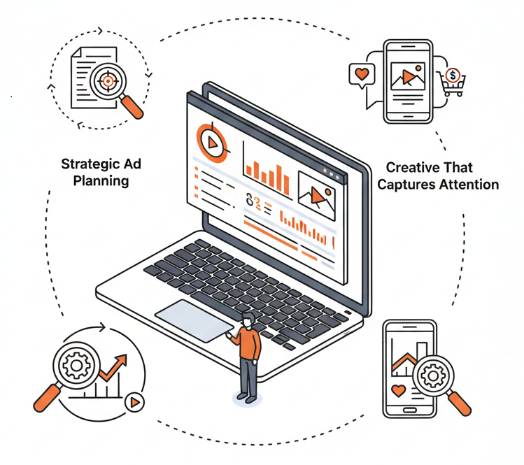 Every successful campaign starts with a clear strategy. We research your audience, analyse competitors, and define campaign goals to ensure your ads are designed to convert, not just get clicks.